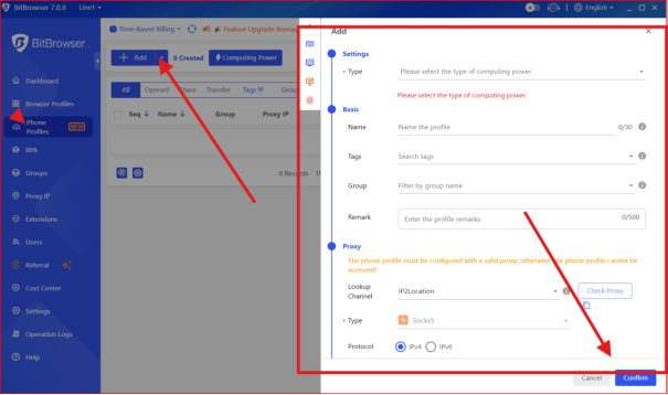 - Create 5 profiles with different OS, timezone, and language settings